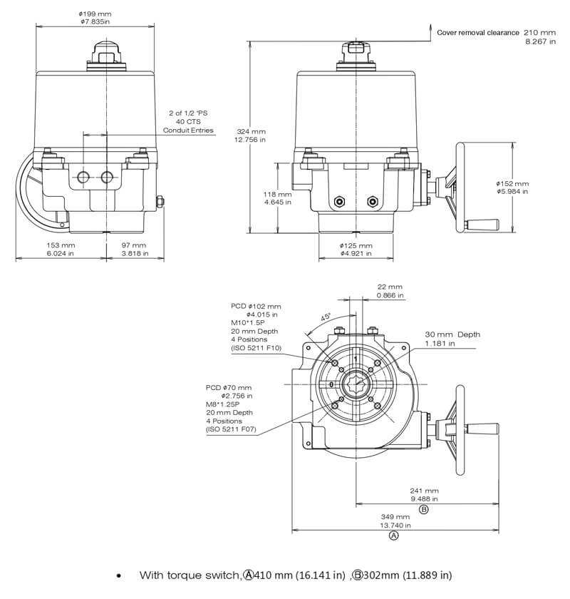The standard model equips with the 1st & 2nd switches for fully-open and fully-closed. The option consists of the 3rd & 4th auxiliary switches which provide dry contacts for fully-open and fully-closed.